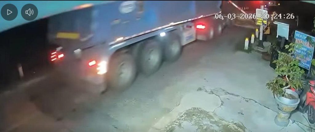 • Video ghi lại toàn cảnh va chạm giữa tàu và xe tải.